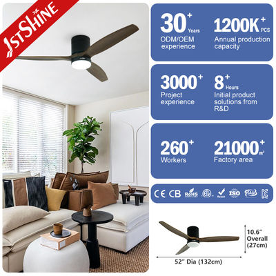 พัดลมเพดานแบบฝังเรียบ 52 นิ้ว พร้อมใบพัดไม้ธรรมชาติ 3 ใบ พร้อมไฟ LED